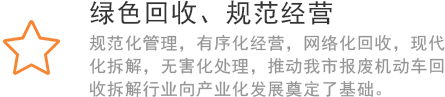 首特钢报废汽车回收拆解公司在厂区的建设上公司投入资金800余万元,整修了厂区路面,改造了办公环境。为规范、环保拆解提供了可靠的资源保证。并且公司严格遵守国务院、市政府各项报废车回收处理的法律法规,认真履行常德市商委对本市报废车回收企业的要求,依法经营、依法回收、依法拆解。公司致力于企业自身管理和建设,建立了报废汽车回收、拆解工艺流程,成为报废车回收龙头企业。公司成立至今,未发生过各种违法、违规的操作行为,得到了北京市政府有关部门的认可。