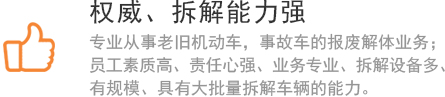 首特钢报废汽车回收拆解公司是交管局认证的正规报废车回收企业,公司拥有正规机动车拆解证明,可办理地方各企事业单位公司及个人车辆报废业务。公司设备齐全,具有二十多年的报废车回收工作经验和先进的现代化的管理经营模式,是北京市报废车回收企业定点项目单位之一,也是常德报废车回收行业的模范标兵单位。
